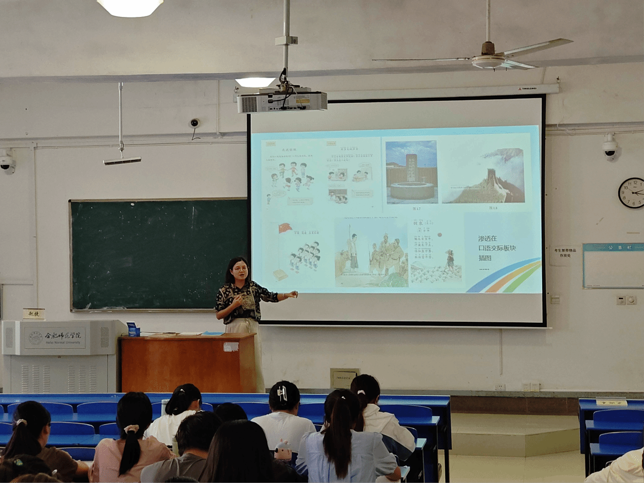 赵捷从写诗的技巧谈起,分享了她对语文教学的独特见解。通过赵捷的指导,学生们了解了语文教材的前世今生,更加清楚的认识了手中的教学材料,明确了自己的方向,知道自己要去向哪里、如何在课前对教材进行研究、课堂实践如何进行。