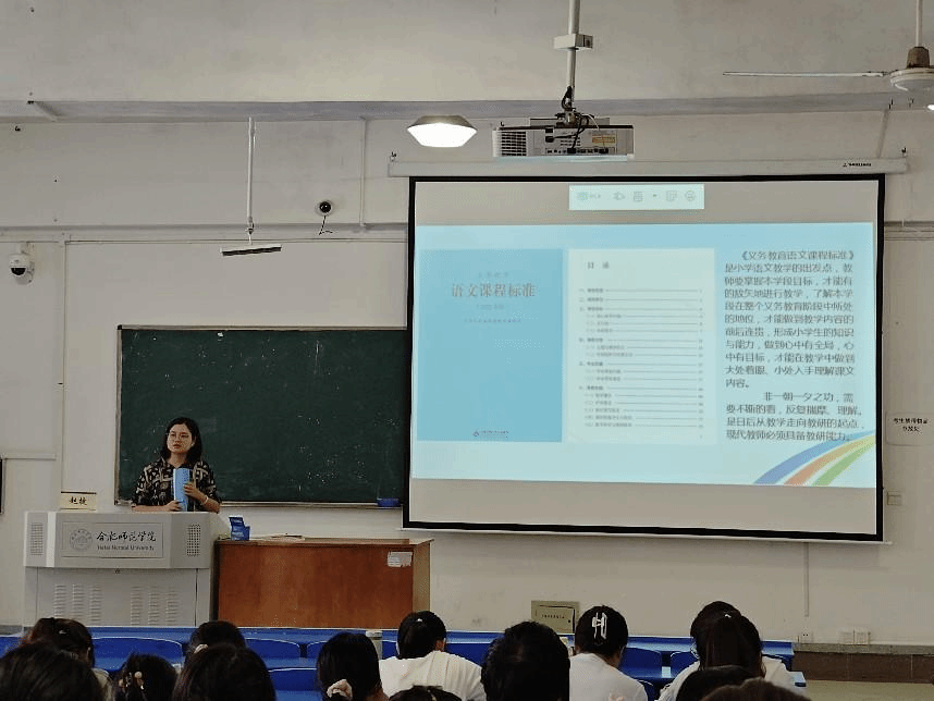 本网讯 为进一步加强师范生学科教育能力和实习工作,9月27日下午,滚球买球的app官网在锦绣校区逸夫楼A106教室开展小学语文有效课堂教学策略指导活动。学院邀请合肥市锦绣小学副校长赵捷以《小学语文有效课堂教学策略浅谈》为主题进行了学科教育指导。滚球买球的app官网2021级小学教育专业全体学生参加了活动,活动由滚球买球的app官网孙晓青主持。