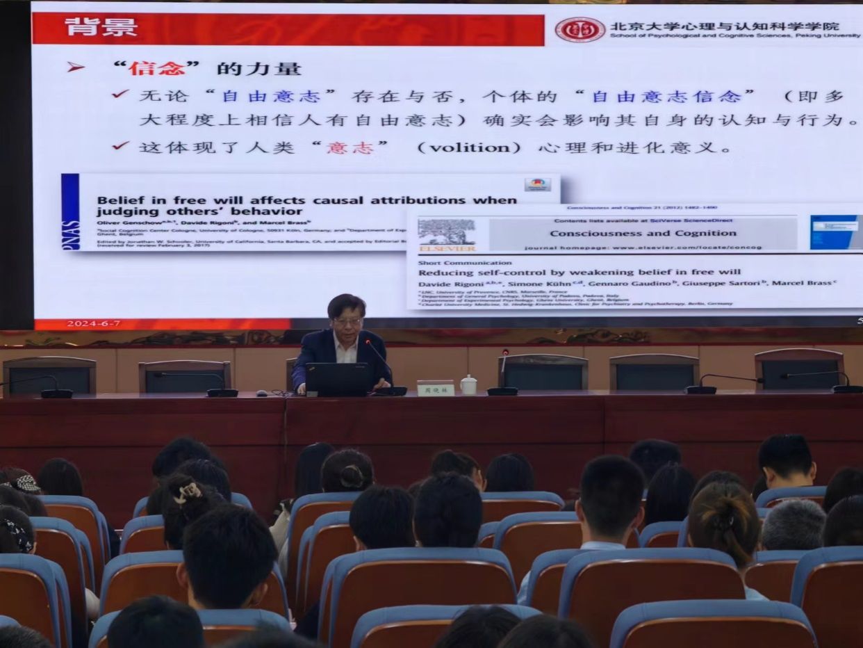 6月7日下午,华东师范大学心理与认知科学学院院长、教育部高等学校心理学教学指导委员会主任委员、长江学者特聘教授周晓林应邀来院作“自由意志、自主选择与行为控制”学术讲座。讲座前,院党委书记徐成钢亲切会见周晓林教授,院党委副书记、院长方东玲,院学术副院长郝宁出席讲座。科研处、研究生处、相关二级学院等单位负责人及各学院骨干教师、辅导员和学生代表共200余人参加讲座。讲座由方东玲主持。