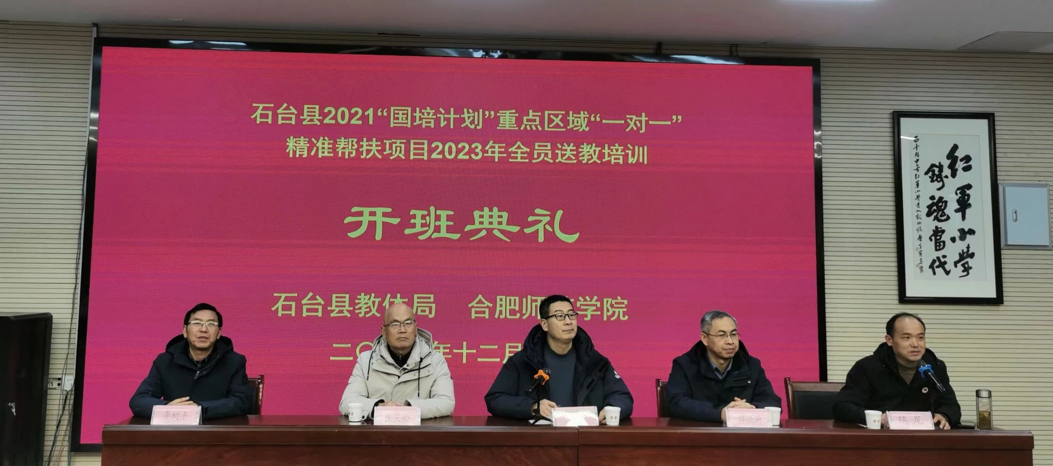 霜染枫林菊花香, 12月16日—17日,由滚球买球的app官网与石台县教体局联合举办的石台县2021年“国培计划”重点区域“一对一”精准帮扶项目2023年全员送教培训在池州市石台县少奇红军小学举办。石台县少奇红军小学全体在职教师、矶滩及珂田中心学校共 60 余名部分骨干教师和红小三年级90余名家长参加本次活动。