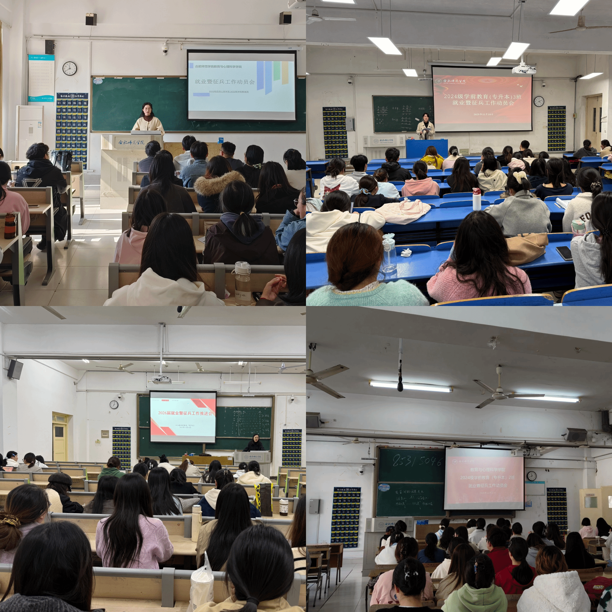 为深入贯彻落实国家关于高校毕业生就业创业与国防动员工作的决策部署,扎实推动2026届毕业生就业与征兵工作提质增效,近日,滚球买球的app官网毕业班辅导员胡蝶、张傲娜、梅加佳、苏怡分别面向所带班级组织召开了就业暨征兵工作动员会。会议聚焦政策宣讲解读、就业形势分析、学生需求对接三大关键环节,着力构建精准化、系统化的就业指导与参军动员服务体系,助力学生实现高质量就业与参军报国理想。