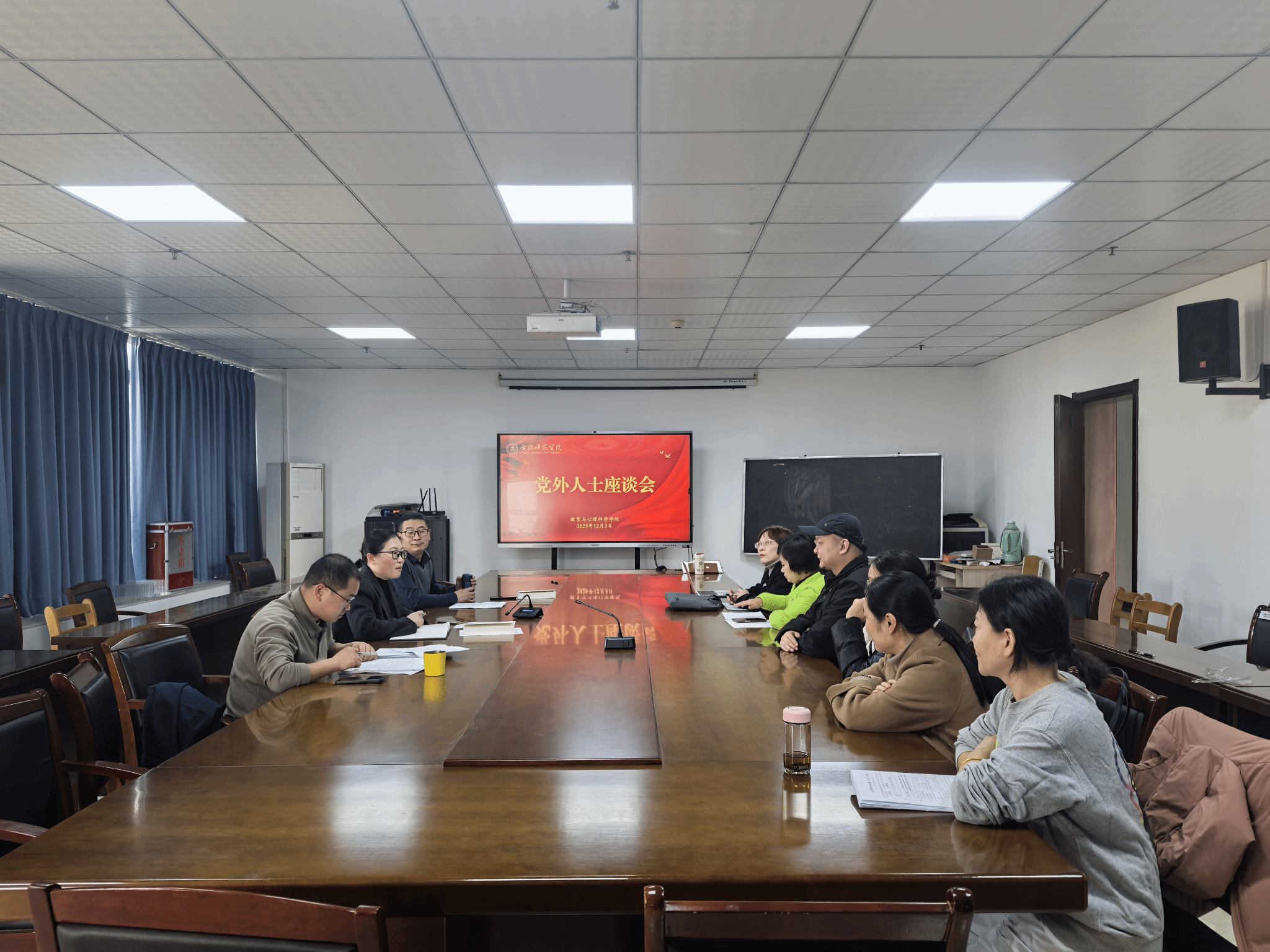 12月3日下午,滚球买球的app官网在行知楼710会议室召开党外人士座谈会,学院党政班子成员、党外人士代表参加座谈会。会议由学院党委书记董萍主持。