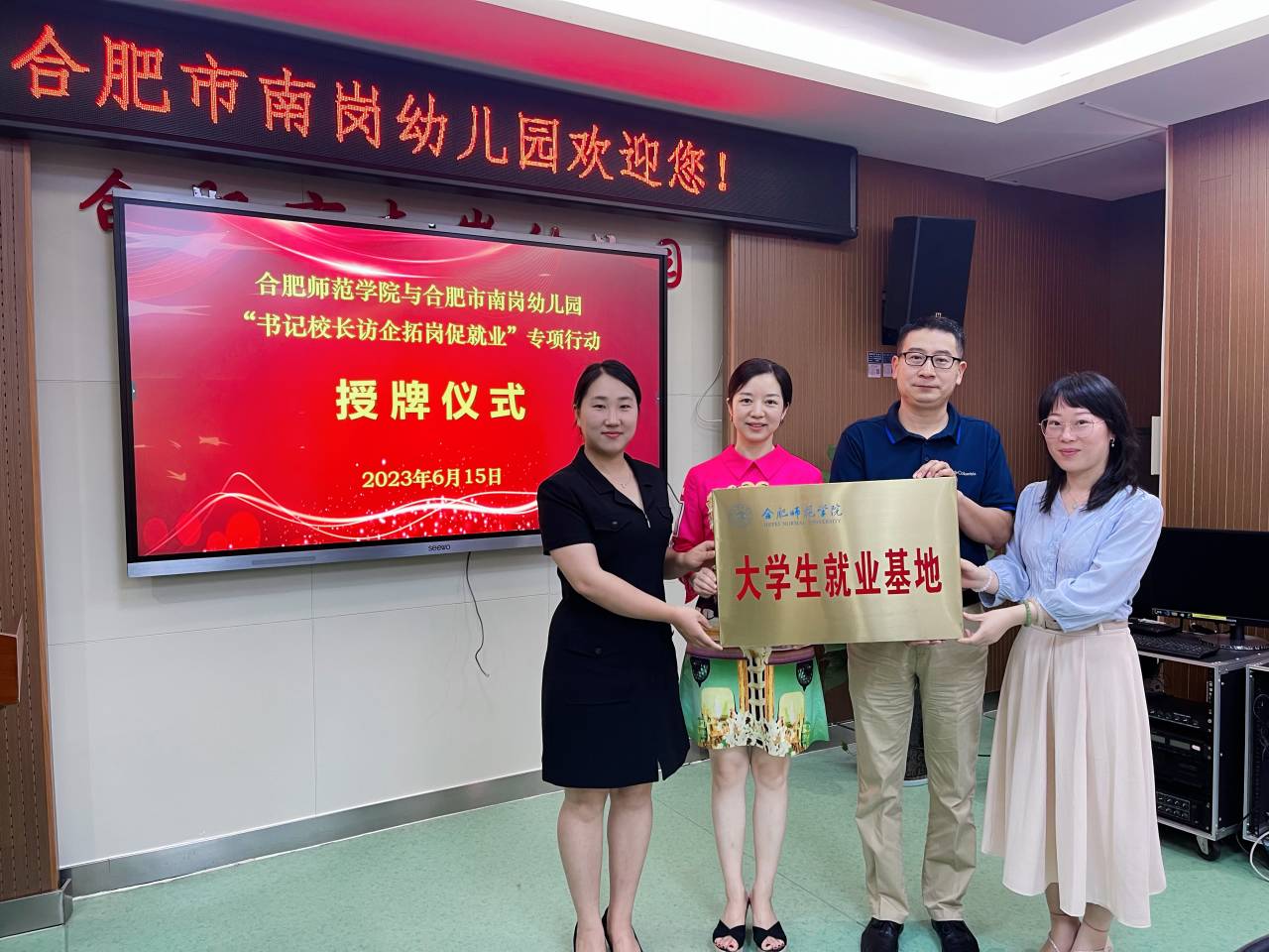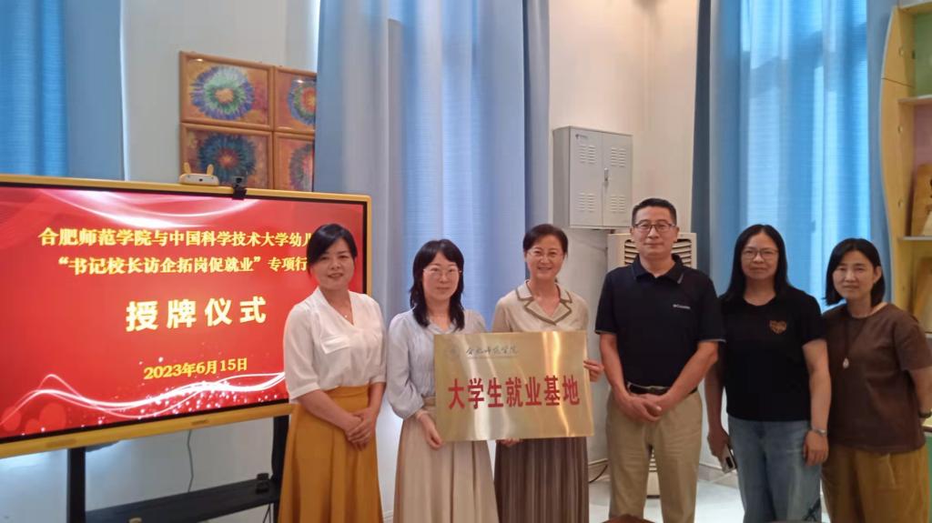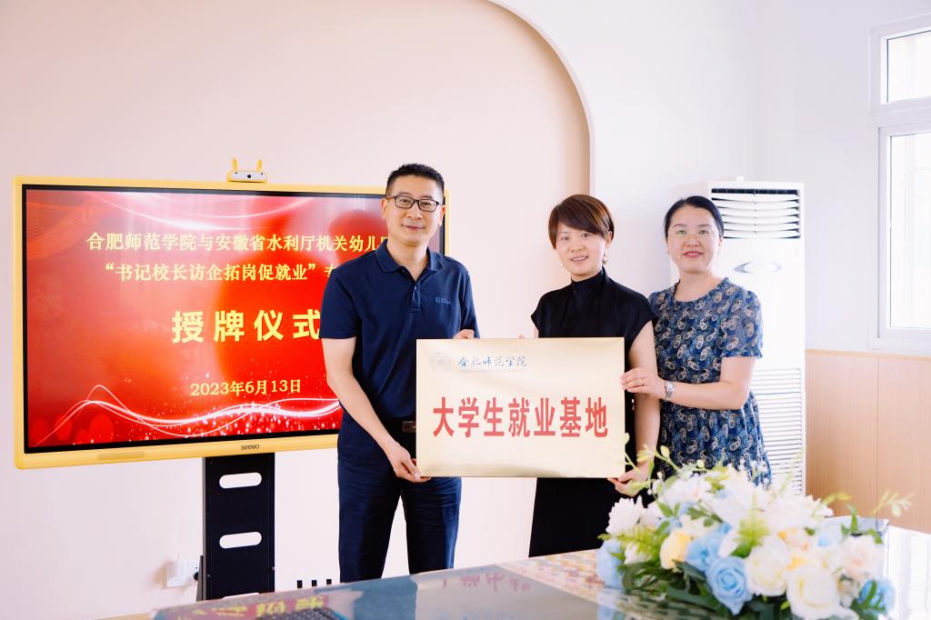 为深入开展学习贯彻习近平新时代中国特色社会主义思想主题教育,进一步落实“访企拓岗促就业”专项行动工作部署,促进毕业生更加充分更高质量就业,6月13至15日,滚球买球的app官网党委书记董萍,副院长胡连峰、胡哲,学前教育系主任孙延永,辅导员代表王磊等赴安徽省水利厅机关幼儿园、安徽省军区机关幼儿园、合肥市南岗幼儿园和中国科学技术大学幼儿园开展考察调研和校企合作交流。