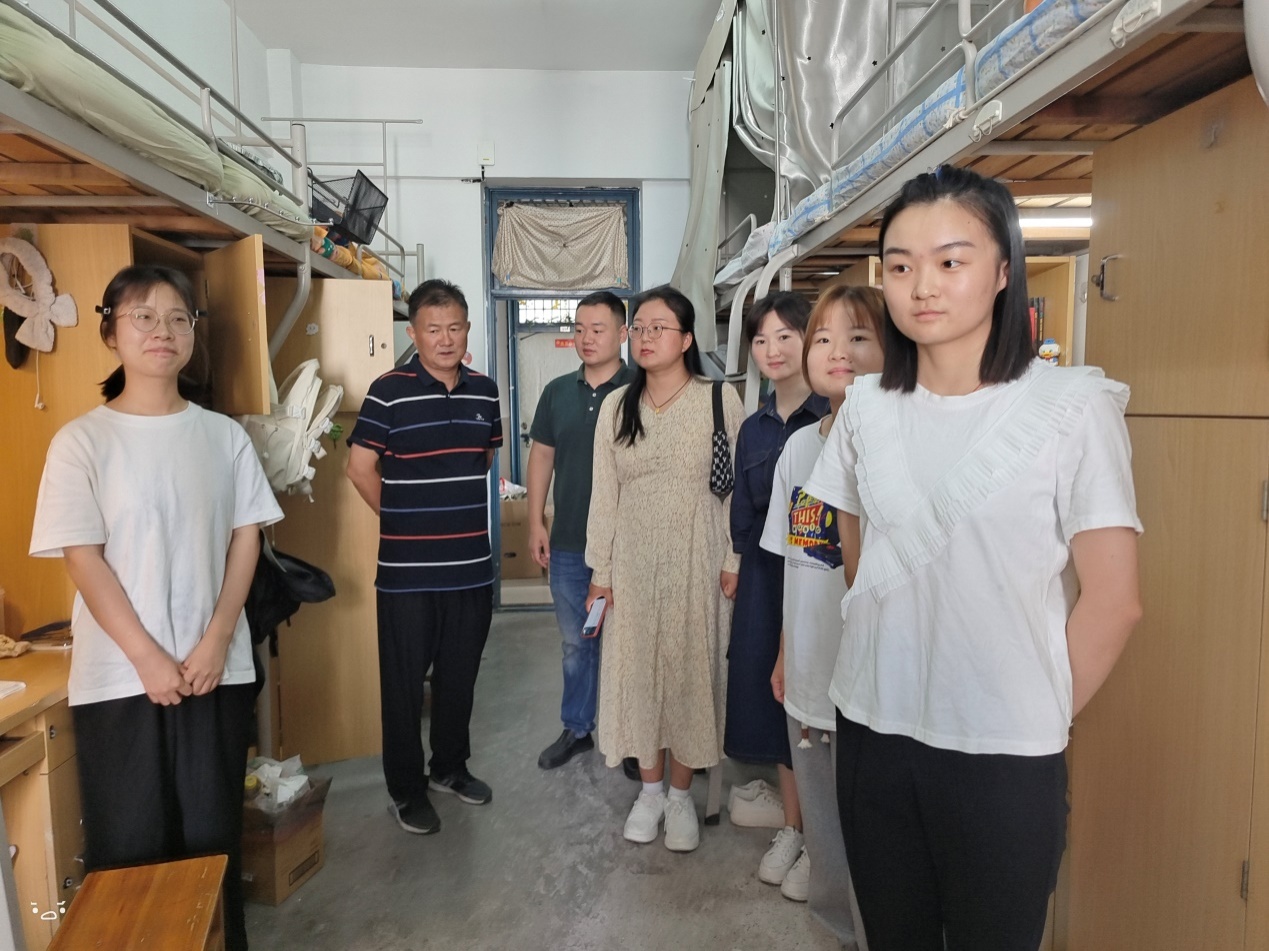 9月2日上午十时,为了解学生搬迁校区后的适应情况,闫龙及各年级辅导员一同走访学生宿舍。走访过程中,闫龙亲切地和同学们交谈,关注同学们的生活起居,特别嘱咐同学们要学会学习、学会生活,相互帮助、相互理解;2019级辅导员王磊则提醒同学们在疫情防控上不得有任何的松懈,戴好口罩,勤洗手,常通风,每日按时健康打卡,若有体温异常、身体不适等要立即上报辅导员;2020级辅导员唐淼希望大家合理安排时间,做好大学规划,树立远大理想,珍惜学习时光,学有所成,千万不要沉迷于游戏、恋爱中;2022级辅导员胡蝶叮嘱同学们做好疫情防控工作,注意个人卫生和健康状况,注意用电安全、人身安全和财产安全,保持良好的生活习惯。新学期第一次走访宿舍增进了学院对学生的新寝室生活环境、学习作风和思想状况的了解,同时对学院学生宿舍的文明建设起到了良好的促进作用。