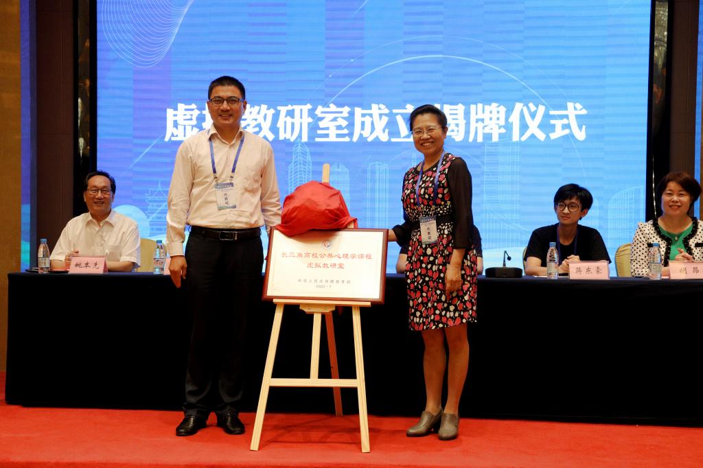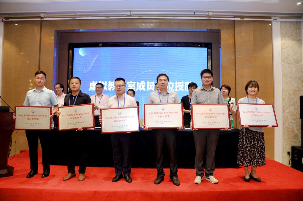 苏彦捷教授、周晓林教授先后致辞,对“长三角高校公共心理学课程虚拟教研室”建设的理念思路、目标任务均给予高度肯定,高度认同“共建共享、交叉融合、动态开放、协同发展”的愿景,期待通过虚拟教研室的试点建设,突破传统高等师范院校公共心理学教学理念范畴,探索构建新型教学和学习生态系统,实现优质教学资源共建共享、互联互通,打造具有前瞻性的教学研究平台。会议随后举行“长三角高校公共心理学课程虚拟教研室”成立揭牌仪式,向成员单位代表授牌,宣布正式启用“长三角高校公共心理学课程虚拟教研室”LOGO。