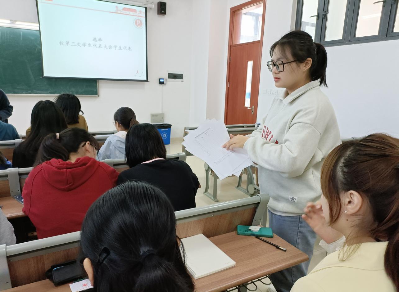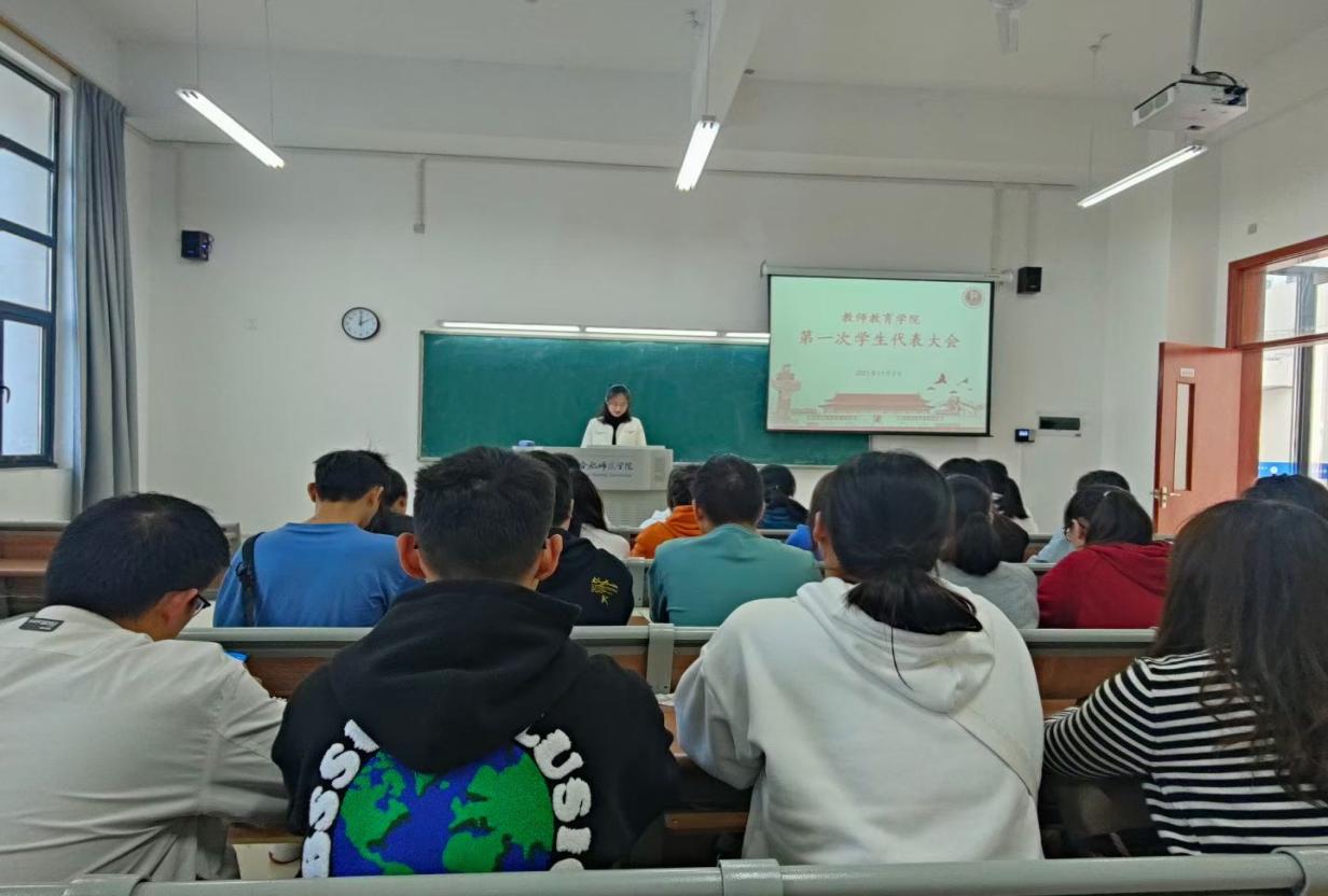 根据《关于筹备召开滚球买球的app官网第三次学生代表大会的通知》精神,学院于2021年11月3日在滨湖校区博学楼A102教室组织召开了教师教育学院第一次学生代表大会。本次大会由学生会主席王雨欣主持,各班级学生代表积极参会。大会全面总结了过去一年的学生会工作,并选举产生了新一届主席团。