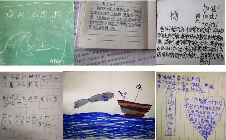 在课堂上,教师教育学院的6位“小先生”分别围绕脱贫攻坚是干出来的、幸福是奋斗出来的、滴水穿石、弱鸟先飞、自力更生、乘风破浪等6个主题,用故事、多媒体等呈现方式以及生动易懂的语言,激发孩子们树立远大志向和高远理想。课堂气氛活跃,互动融洽热烈,“小先生”们激情投入,听课的孩子聚精会神。在这些“小先生”的启发引导下,两所小学的孩子们用稚嫩的笔触、以或写或画的方式展示出了对未来美好生活的憧憬。