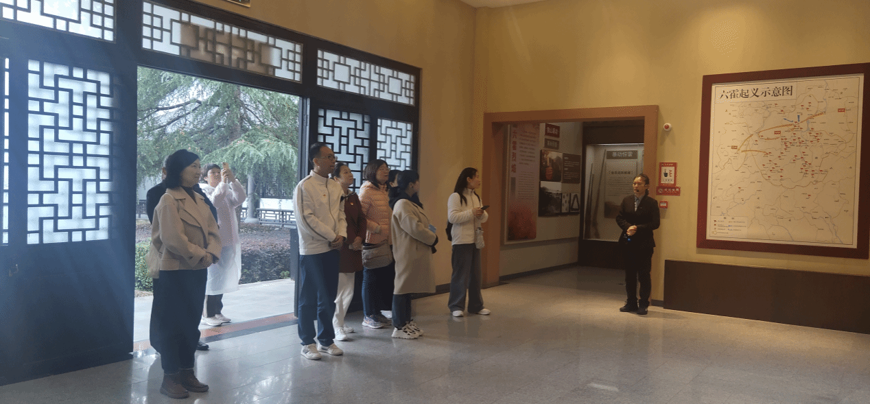 六安市裕安区独山镇,有“一镇十六将”之称,独山革命旧址群是全国罕见、安徽唯一完整保存着苏维埃时期集党、政、军、文化、教育、司法、经济于一体的县级机构旧址。11月10日上午,在六霍起义纪念馆,全体党员在讲解员的引导和解说下,依次参观了“山雨欲来”“独山暴动”“苏区春秋”“红旗飘飘”和“丰碑长存”等五个陈展部分,党员教师们了解了独山镇“户户有红军、村村有烈士,山山埋忠骨、岭岭皆丰碑”的故事。