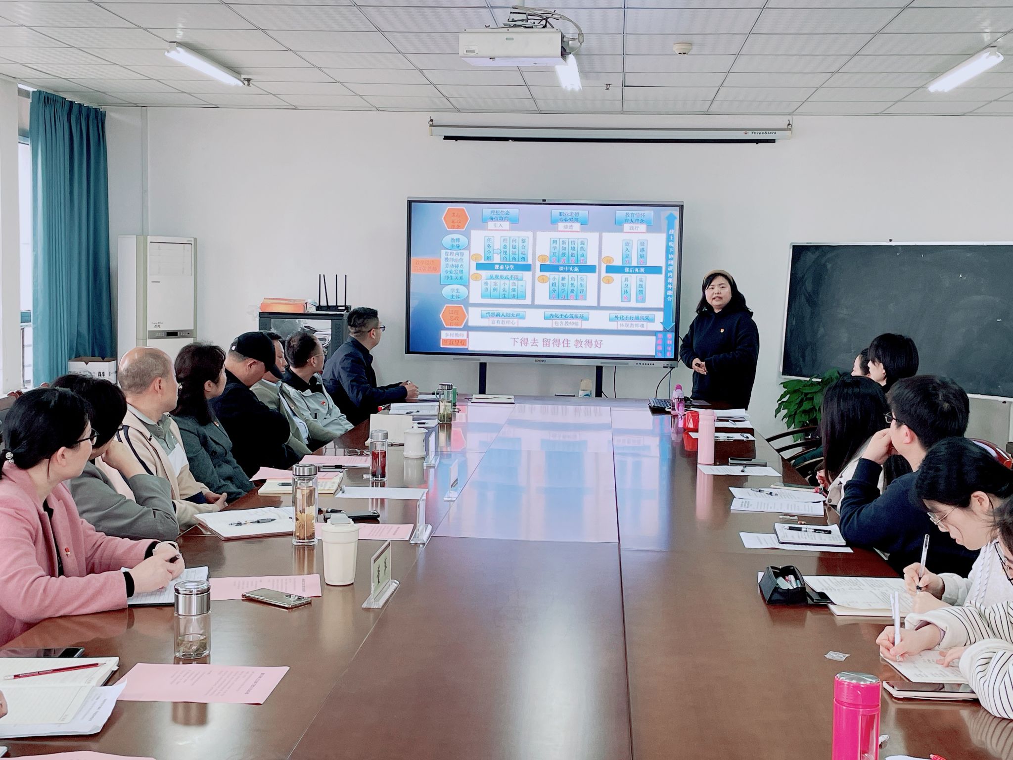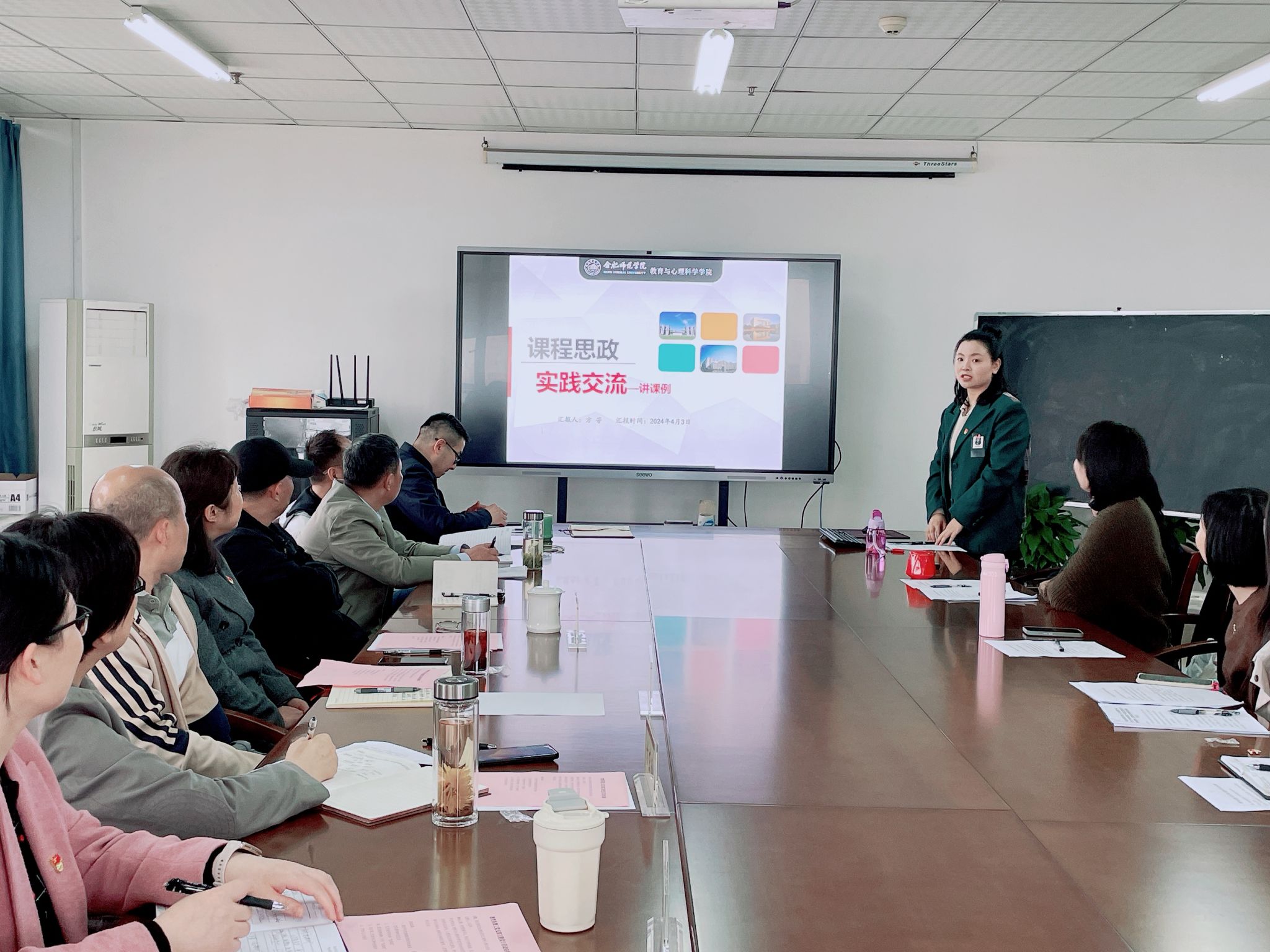 汪昌华领学教育部《高等学校课程思政建设指导纲要》,介绍教育系教工党支部作为全国党建工作样板支部培育单位推动“党建+课程思政”深度融合的思路、方法和举措等。党员教师韩传信教授围绕“增强课堂教学中的德育资源意识”,着重从学科课程、教学活动、师生交往、课堂环境等方面详细阐述课程思政元素挖掘和提炼的做法与经验,强化课程思政与专业知识育人的有效融合与实效,坚持育人与育才相统一;入党积极分子邓珍珍老师和党员教师杨婷、方芳分别以所授课程为例进行“说课程”“说课例”,分享所授课程的课程思政特色,将理想信念、职业道德、教育情怀作为课程思政元素植入课程教学,在小学教育专业学生“下得去、留得住、教得好”上下功夫,增强学生的责任心和使命感。