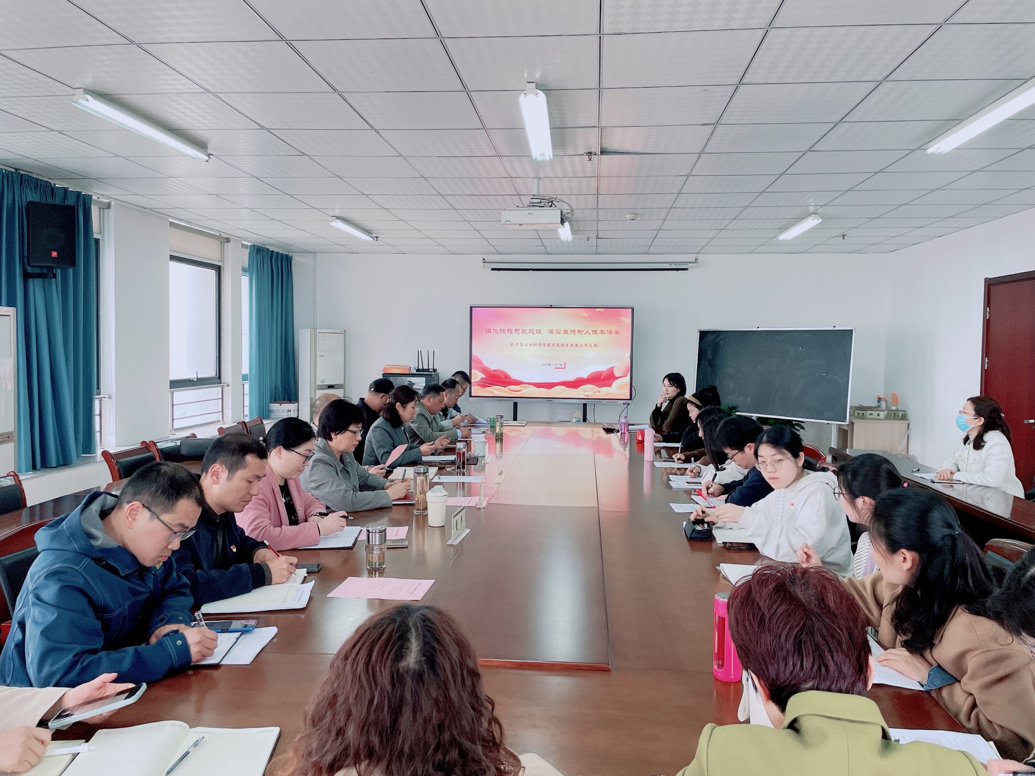 为深入学习贯彻习近平新时代中国特色社会主义思想和党的二十大精神,促进党建与事业深度融合,充分发挥基层党组织的战斗堡垒作用和党员的先锋模范作用,4月3日下午,教育系教工党支部在行知楼710会议室开展“深化课程思政建设 落实立德树人根本任务”主题党日活动。院党委副书记、院长方东玲,机关第二党委书记、马克思主义学院教授陶有浩到场指导。滚球买球的app官网党委,学前教育系教工党支部、心理系教工党支部、学生党支部等支部书记、副书记,教育系教工党支部全体党员和入党积极分子代表,学生第一党支部学生党员代表等参加会议。会议由教育系教工党支部书记汪昌华主持。