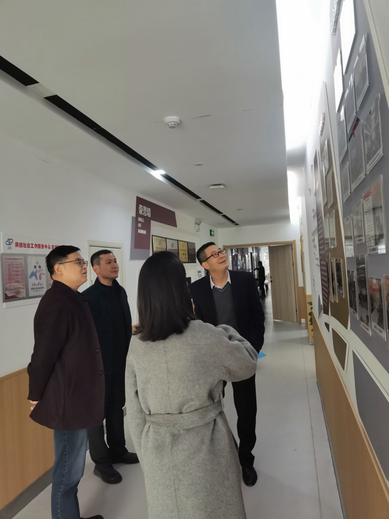 霁航社会工作服务中心负责人柏一博、主任刘夏艳等陪同参观了心理测量室、沙盘游戏室、心理咨询室等部门。刘夏艳介绍了中心的基本情况和开展社会服务项目。