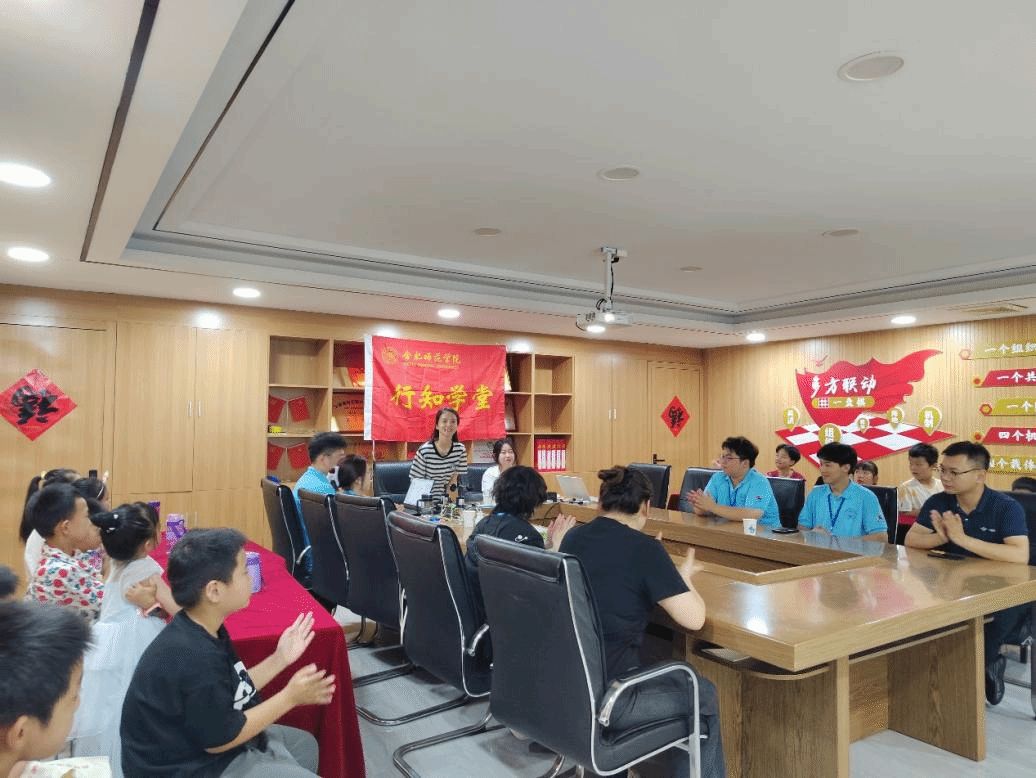 7月9日,滚球买球的app官网滨湖世纪社区行知学堂举行开班仪式。滨湖世纪社区金翰网格党委副书记张欣、滚球买球的app官网教师唐银及8位小先生、28名小学员参加了开班仪式。