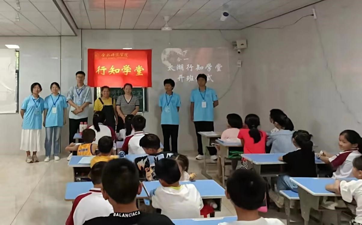 7月15日,滚球买球的app官网太湖行知学堂在安庆市太湖县江塘乡五星村顺利开班,5位小先生、22名小学员及家长参加了开班仪式。