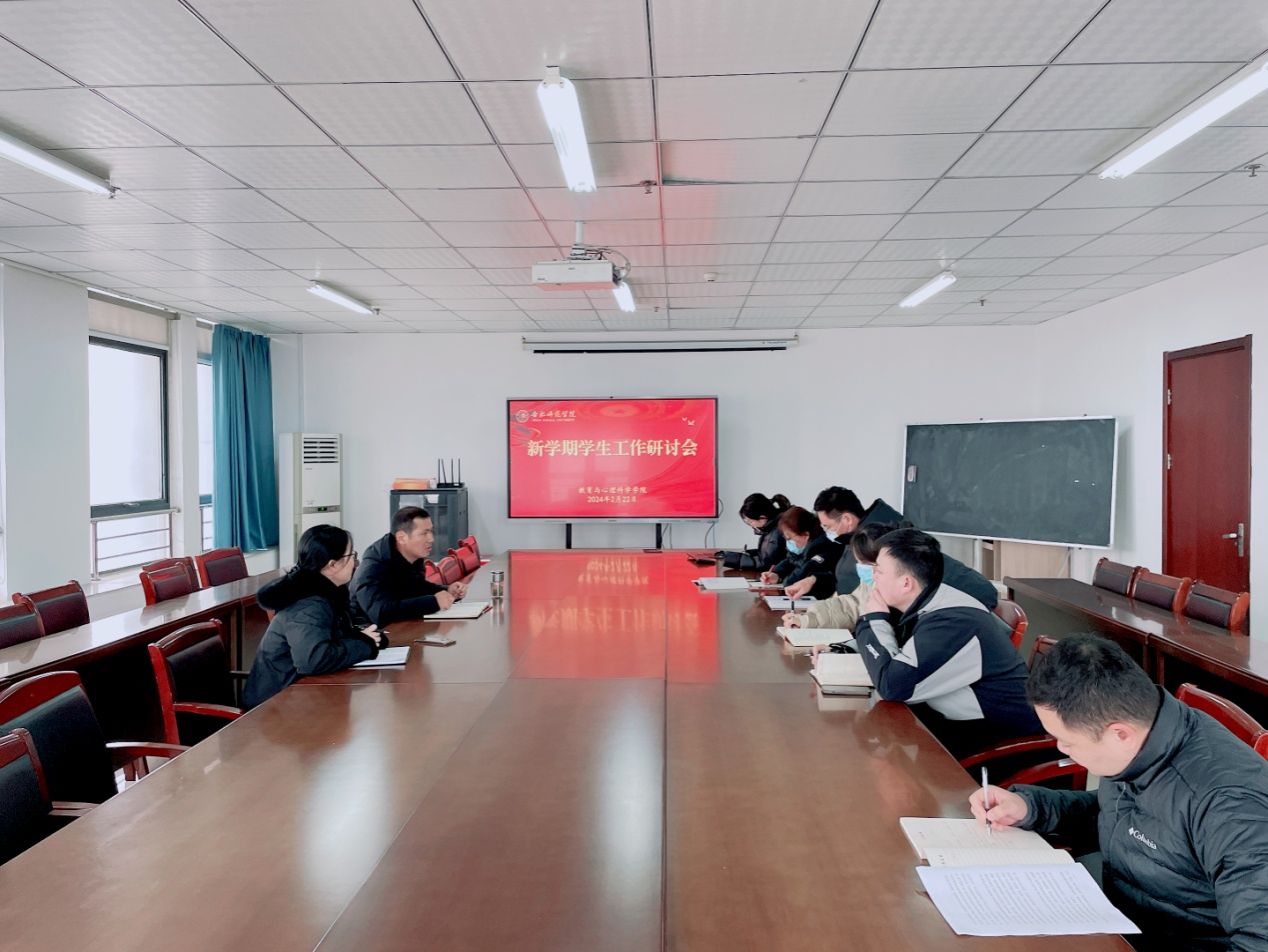会上,陈帅回顾了2023年度工作基本情况,结合学院实际工作,部署了新学期开学准备工作和学生工作重点事项。陈帅表示,各年级辅导员要认真做好学生返校报到接待工作,及时完成有关信息统计,深入了解学生思想动态、身心健康状况等;结合不同年级学生特点,精心组织开好新学期第一次主题班会,上好开学第一堂思想政治、学风建设、心理健康、就业指导、安全稳定等教育课,推动新学期学生工作开好局、起好步。他强调,本年度学生工作要继续落实落细常规工作,突出抓好团学工作、学生党建、三优创建、心理健康节活动、毕业班就业工作等重点任务,积极探索和全力打造“行知文化节”“教院青年说党史”等团学和学生党建品牌活动,推进学生工作高质量发展。同时,他对辅导员队伍建设提出三点要求,一是坚持系统思维和闭环思维,积极思考谋划学生教育管理服务体系化建设;二是坚持改革创新意识,破除因循守旧的固定思维,积极推进各项工作换档升级、提质增效;三是坚持问题导向,转变工作作风,做到切实深入学生、了解学生,及时努力解决学生关切的问题和诉求。