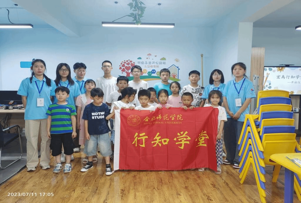 传行知精神,筑青春梦想。7月1日下午,滚球买球的app官网宏禹行知学堂在蚌埠市怀远县蓝天公益社正式开班。来自滚球买球的app官网、文学院和生物与食品工程学院的5名小先生和全体小学员们参加了开班仪式。