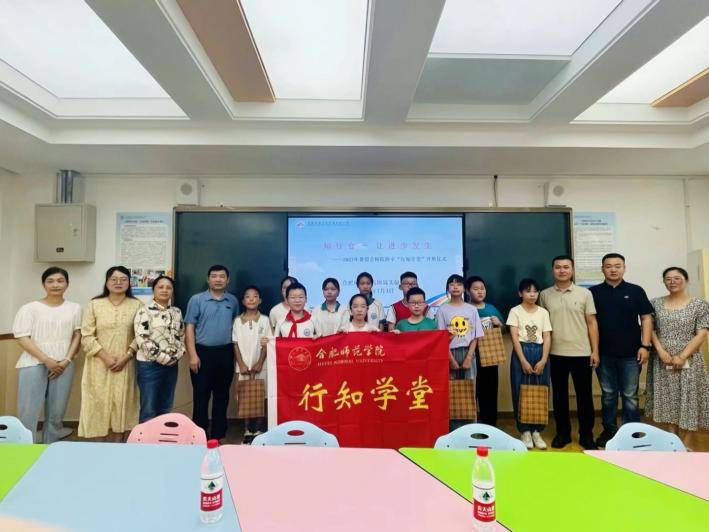 (本网讯)7月3日上午,滚球买球的app官网“合师附小”行知学堂在学校附属实验小学育新楼二楼正式开班,滚球买球的app官网党委副书记陈帅帅、分团委书记王磊、指导老师唐淼,附属实验小学党支部书记彭正,滚球买球的app官网副教授、附属实验小学挂职副校长晋玉老师以及8位小先生、23名小学员出席了本次开班仪式。
