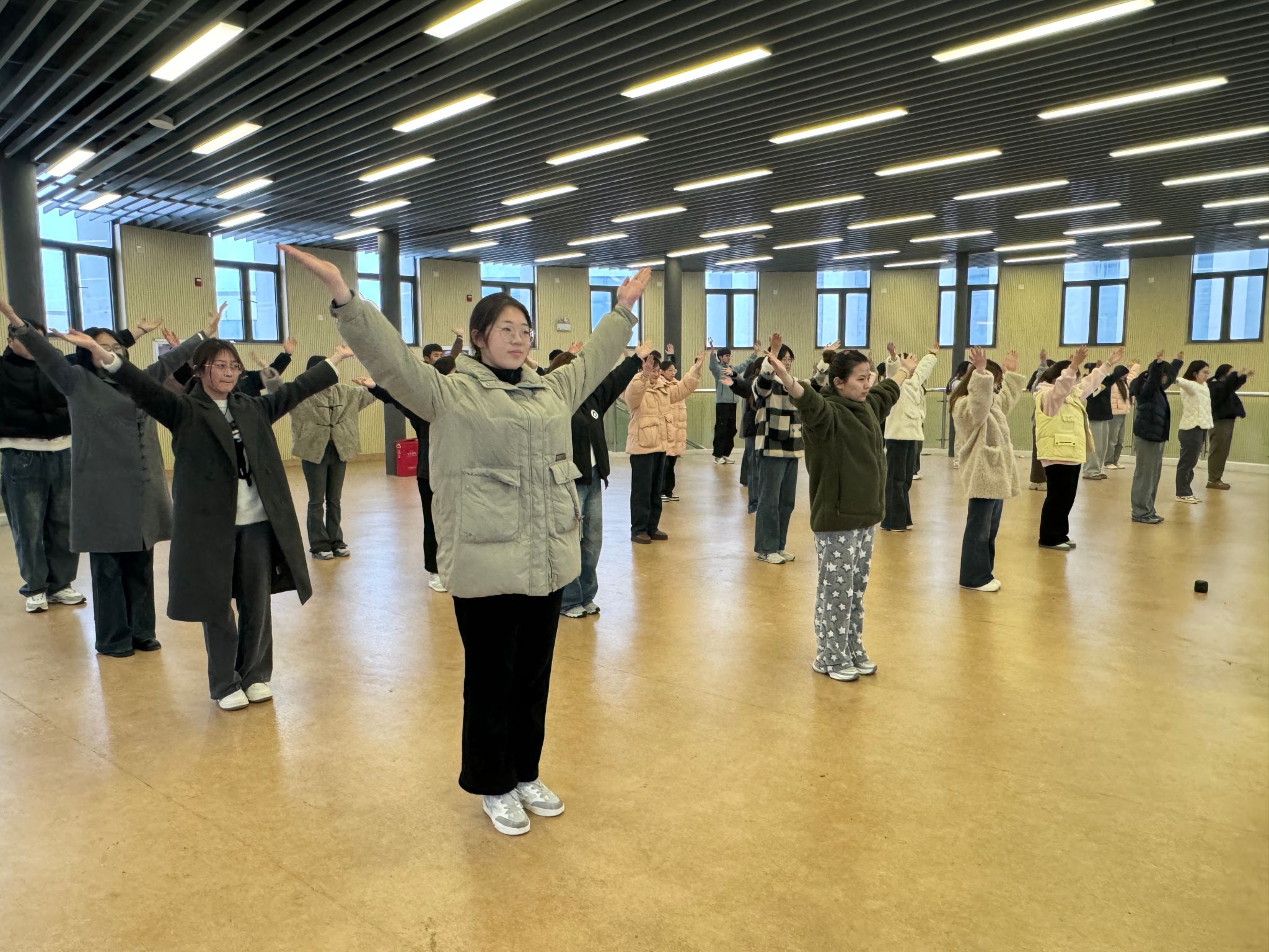 为积极响应学校开展“青春爱运动,健康强中国”体育嘉年华活动的号召,推动广大学子在体育锻炼中享受乐趣、增强体质,3月12日,滚球买球的app官网在滨湖校区铭传楼四楼举行“向阳而生 律动青春”广播体操比赛。学院8支比赛队伍同场竞技,以昂扬姿态展现新时代大学生风采。