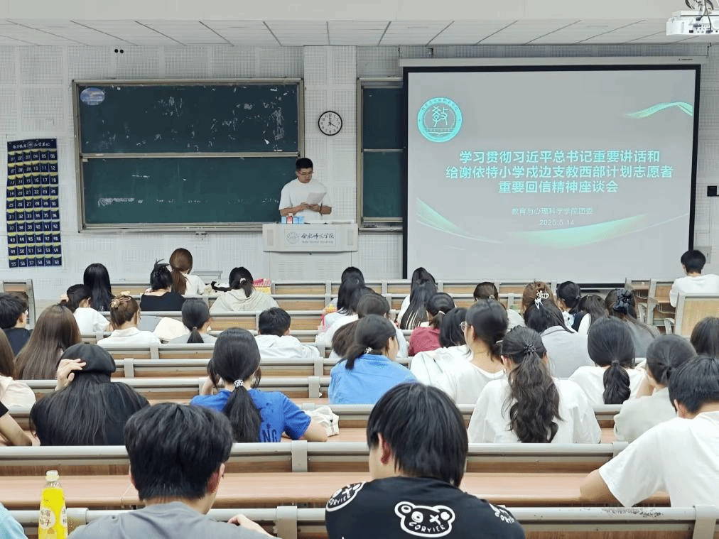 在经验交流环节,2023级应用心理学班团支书吕梓玥同学分享了自己的学习思考以及将来从事教师工作的感想。她表示自己将从回信中深刻体会教育工作者的重要使命,以重要回信精神指引自己如何站稳三尺讲台。学生会新媒体中心运营部部长巴云龙同学积极发言,他说支教志愿者的事迹深深激励着自己,要努力成为一名无私奉献、敢于担当的新时代青年,在未来的学习和生活中发光发热。
