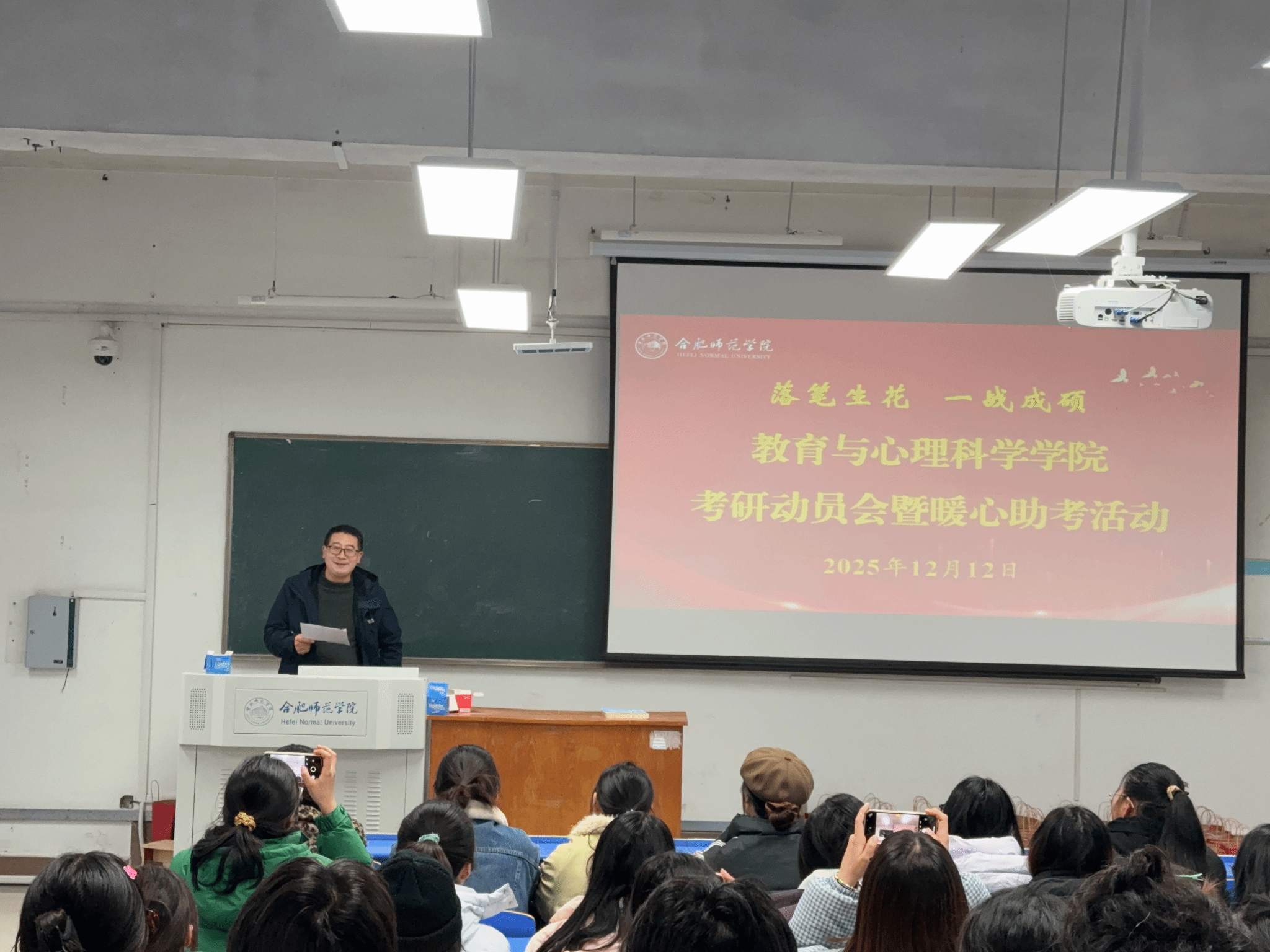 岁寒情暖,护航研梦。为深入贯彻落实立德树人根本任务,切实做好2026届毕业生考研指导与服务保障工作,12月12日下午,滚球买球的app官网在锦绣校区逸夫楼A106举办2026届考研动员会暨暖心助考活动。滚球买球的app官网党委书记董萍、党委副书记陈帅、副院长胡连峰、教师代表李辉、全体毕业班辅导员与100余名考研学生齐聚一堂、亲切交流,以实际行动为学子们加油鼓劲,传递学院的深切关怀与温暖支持。