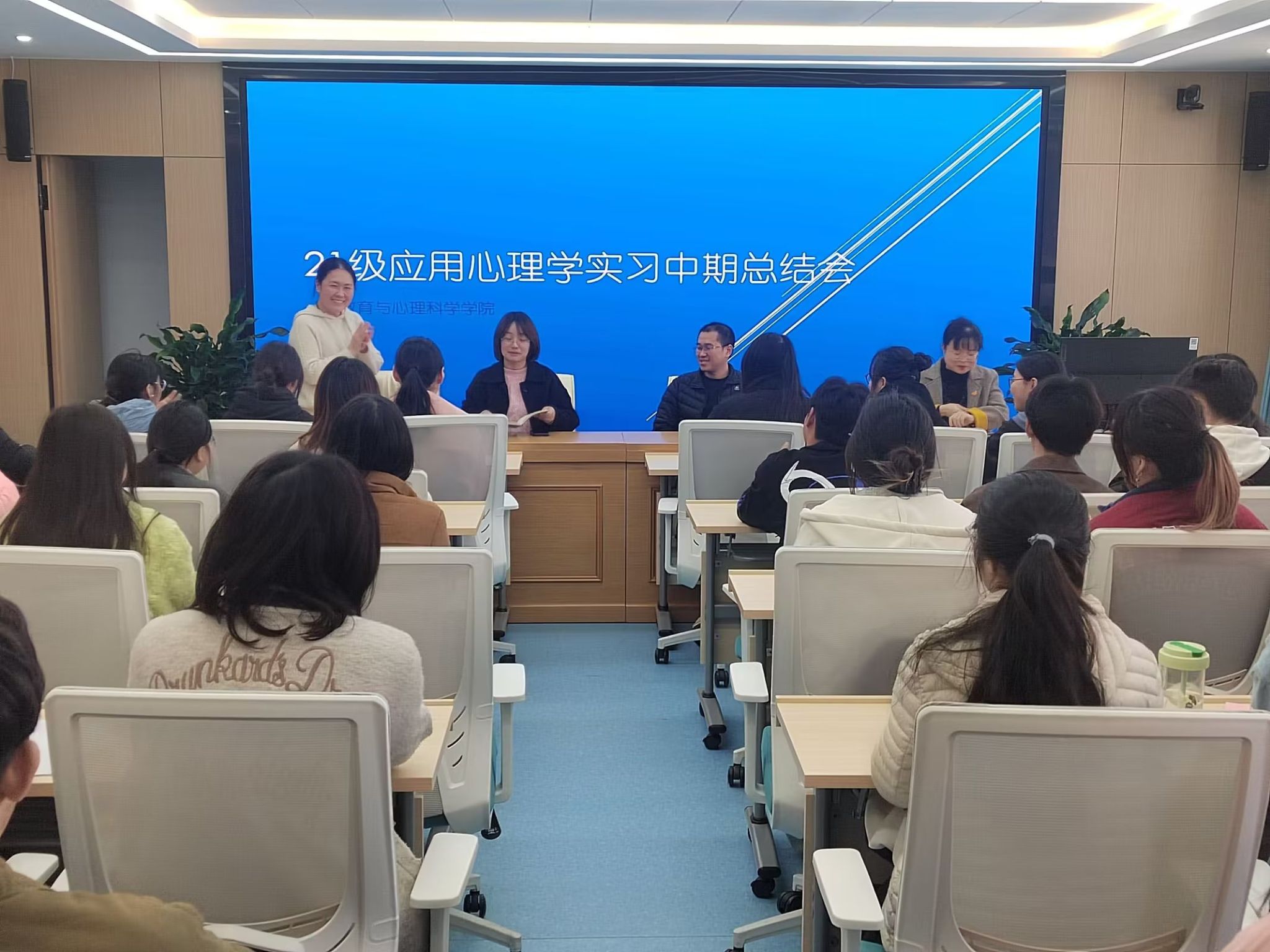 本网讯 为深入了解师范生教育实习情况,强化师范生教育实习工作,11月27日,滚球买球的app官网在图书馆7楼召开21级应用心理学专业实习中期总结大会,滚球买球的app官网副院长胡哲、心理系主任黄凤、实习负责老师梁昕和实习带队老师吴姗姗出席会议,会议由梁昕老师主持。