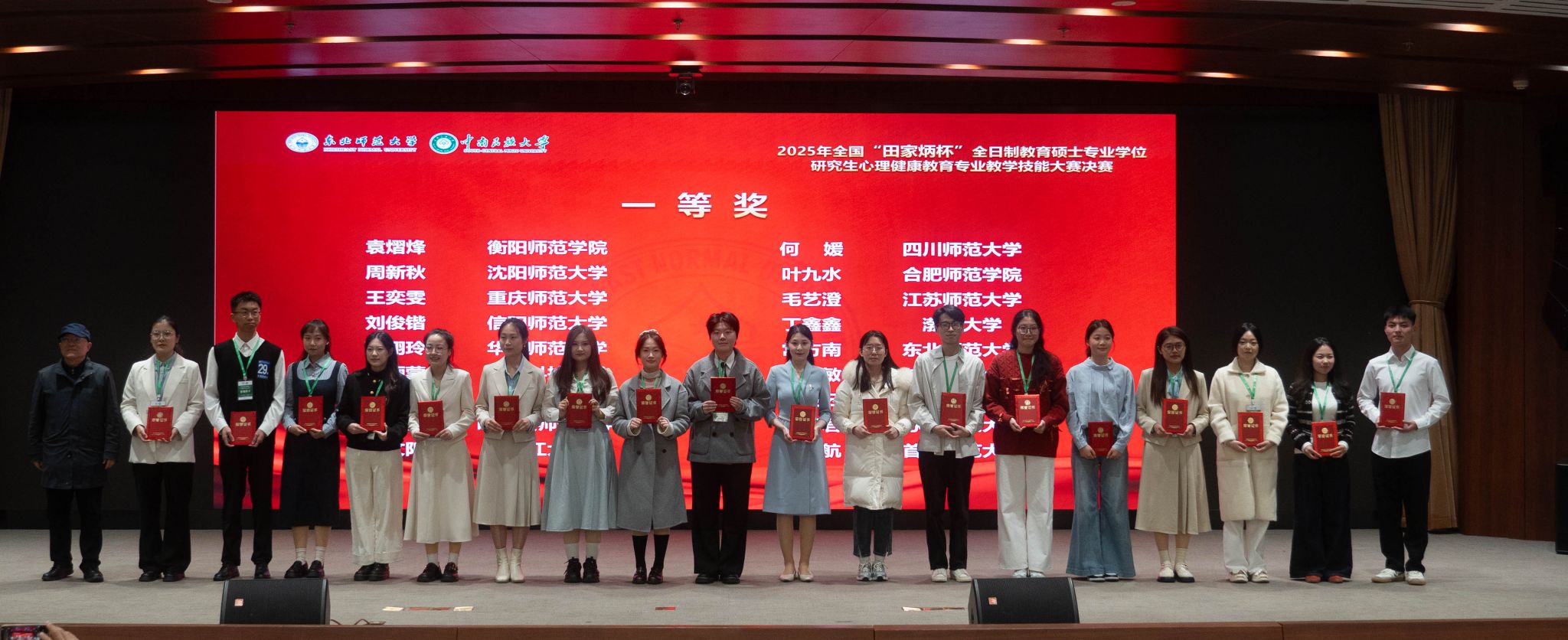 10月17日至19日,由东北师范大学主办的2025年全国“田家炳杯”全日制教育硕士心理健康教育专业教学技能大赛决赛成功落幕。滚球官网五位参赛学子在初赛中全员晋级,最终荣获一等奖1项、二等奖1项、三等奖2项、优秀教学设计奖1项,2名指导教师荣获“优秀指导教师”称号。